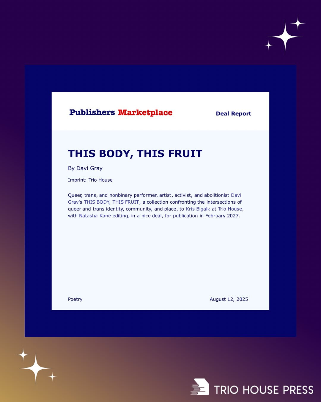 My first collection - This Body, This Fruit - Trio House PressDue out in 2027. I'll keep you posted 😉Aug 13, 2025642ShareShareSubscribePreviousNext