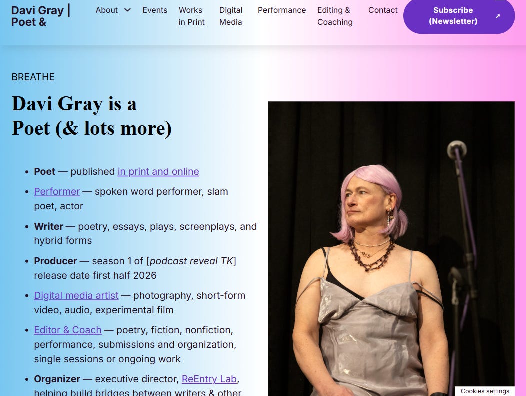 Technically this happened in 2025, and it’s been there for a few months, but: I have a newly redesigned website! It’s stylistically matched with this newsletter’s recent redesign, both of which match my business cards 💖, and I really love it. I’ve also added a page about my editing and coaching services, available as single sessions or ongoing arrangements. I’m fully booked through the first part of this year, but if you’re interested, now would be a great time to get something on the calendar.