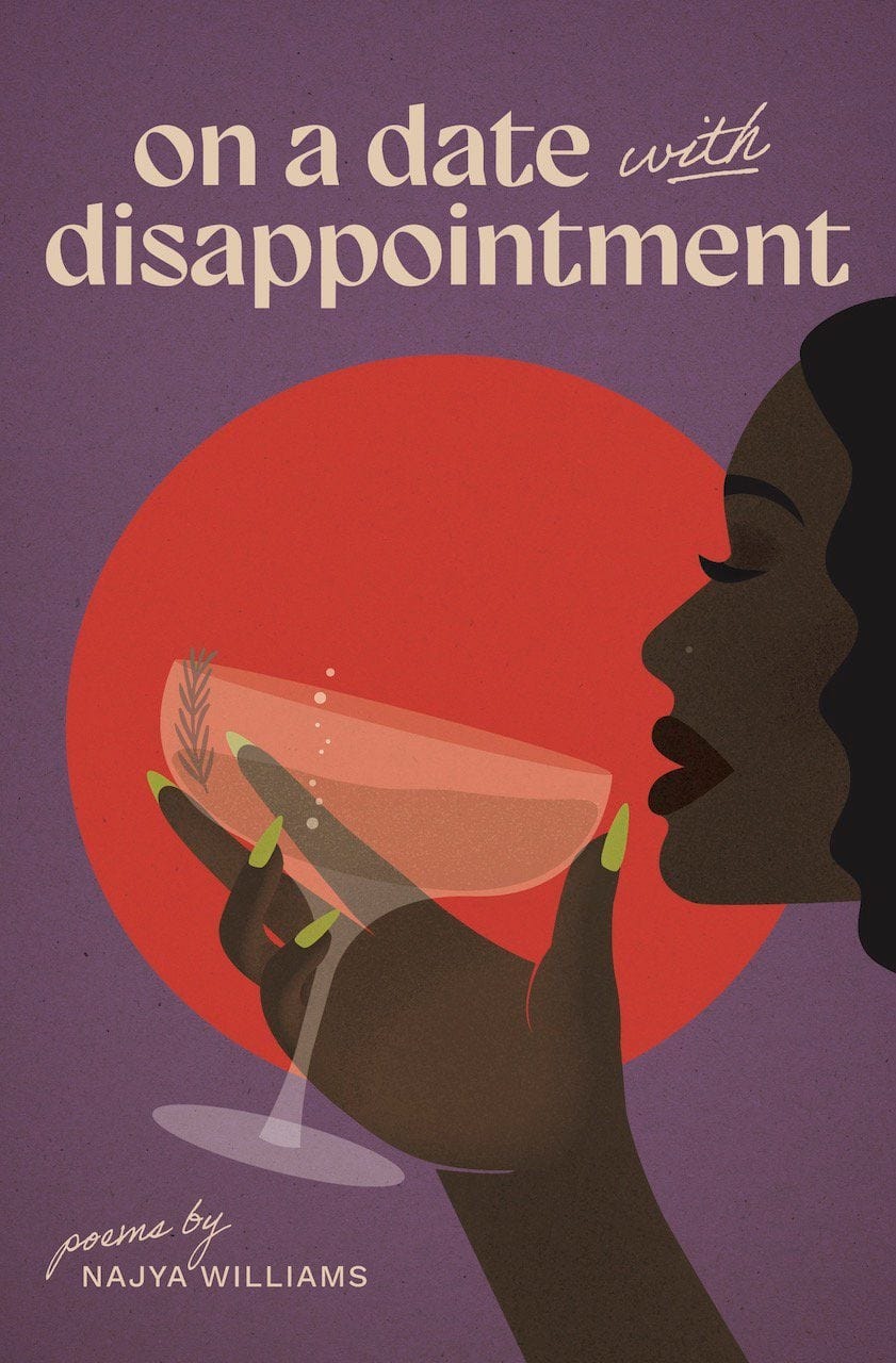 The book is on a date with disappointment, by Najya Williams. That’s its title. The book is not, itself, on a date with anybody or anything. I’m looking right at it, and it’s just lying there by itself. (Oh, wait… 🫠)