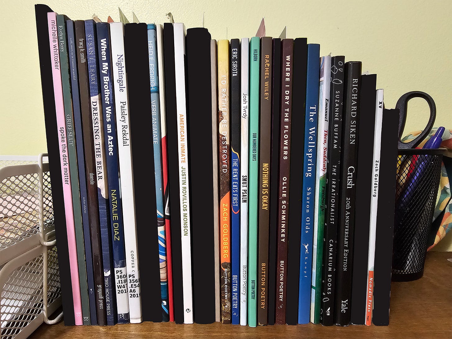 The book is I’d Rather Be Destroyed, by Zach Goldberg. This collection has a lot of interesting and/or fun formal constructions, including a Punnett square and several contrapuntals. It’s got me itching to do some more contrapuntal work myself!